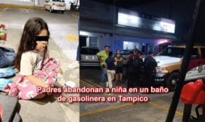 Padres abandonan a niña en un baño de gasolinera en Tampico