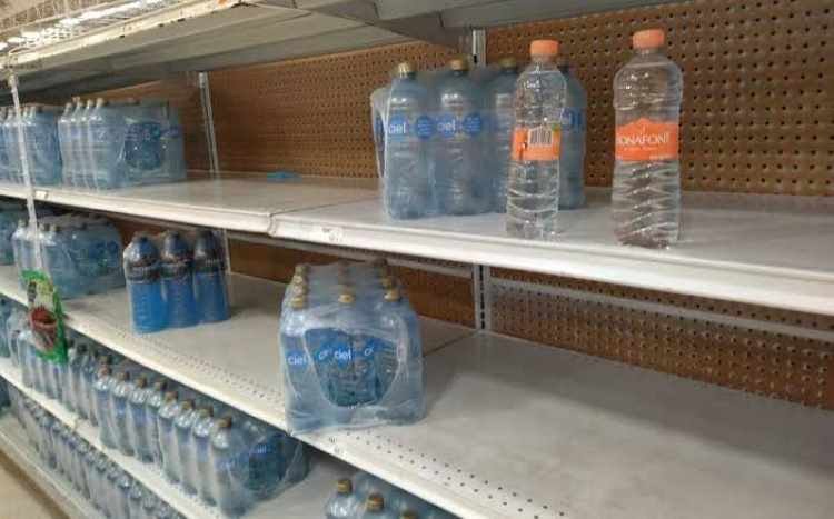 La falta de agua ha generado que existan compras de pánico en las tiendas de autoservicio, por lo que se está generando un desabasto de agua embotellada.
