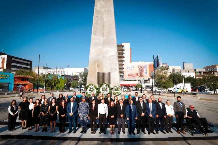 El Presidente Municipal, Luis Donaldo Colosio Riojas, en compañía de funcionarios municipales, Síndicos, Regidores y representantes de los poderes Legislativo y Judicial encabezó una Guardia de Honor en el Obelisco de la avenida Juan Ignacio Ramón.
