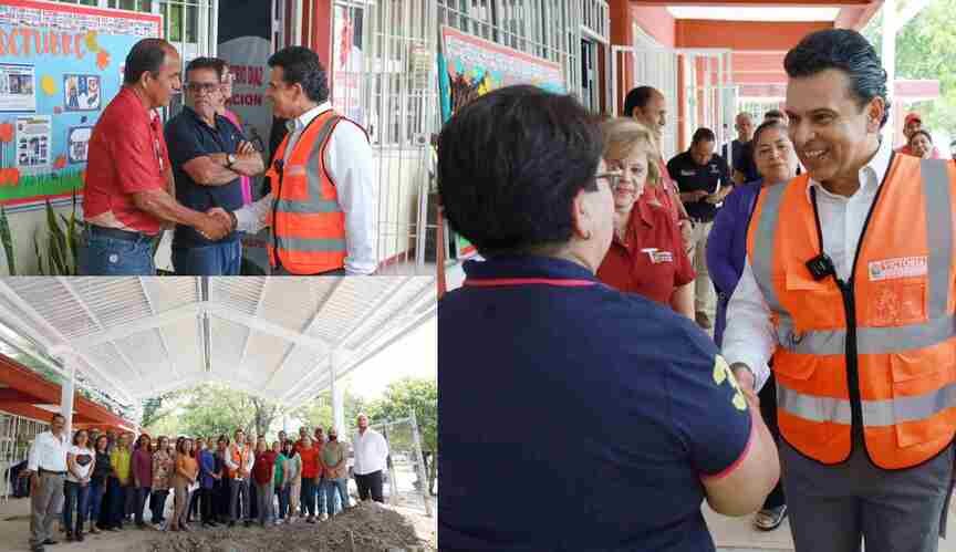 En su visita al Centro de Atención Múltiple -CAM- “Porfirio Díaz” de la colonia Mainero, entregó a directivos y padres de familia una barda perimetral de 45 metros lineales y constató el avance de la construcción de una techumbre de 72 M2 que beneficiará en sus actividades educativas y formativas a 191 alumnos.