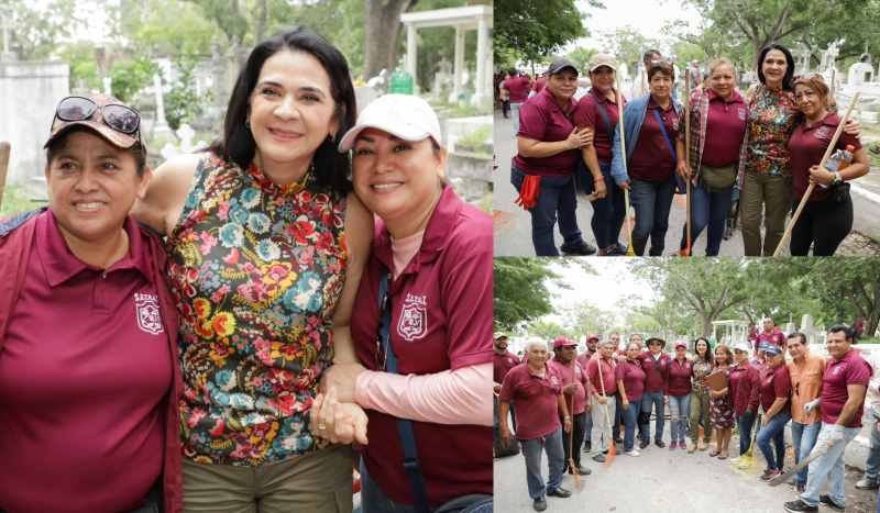 La Presidenta Municipal Mónica Zacil Villareal Anaya, encabezó este sábado, una amplia jornada de limpieza en el cementerio municipal de la avenida Hidalgo, como parte de las acciones previas a la conmemoración de Día de Muertos.