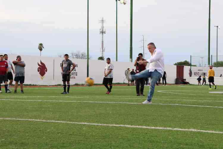 Durante la convivencia, el candidato por MORENA, PT y Verde Ecologista, participó en la premiación del torneo de fútbol; posteriormente, lo invitaron a dar la patada inicial de un partido que inició en otro espacio de ese mismo complejo deportivo.