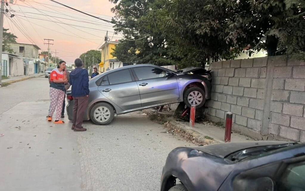 El accidente ocurrió justo en la intersección de la calle Cedro con Lirio. Según los primeros reportes, el conductor perdió el control de la unidad, lo que provocó que el vehículo se saliera de la carpeta asfáltica y se impactara de lleno contra el muro de una propiedad.