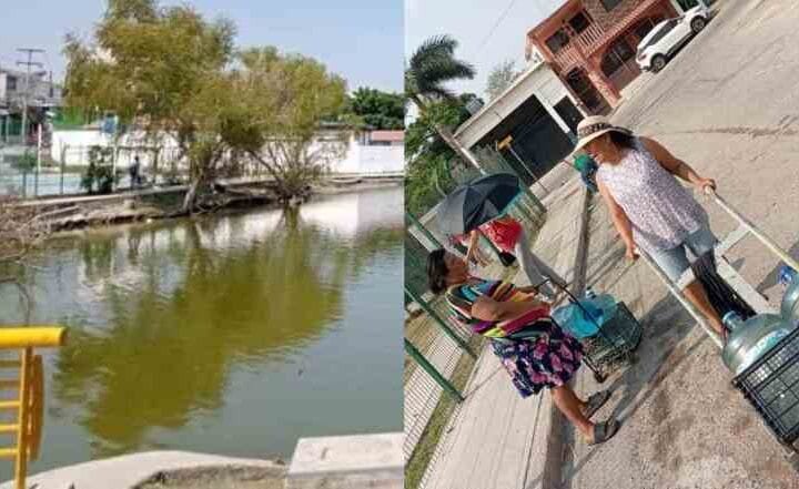 Debido al desabasto de agua en el sur de Tamaulipas, vecinos del Fraccionamiento Haciendas de...