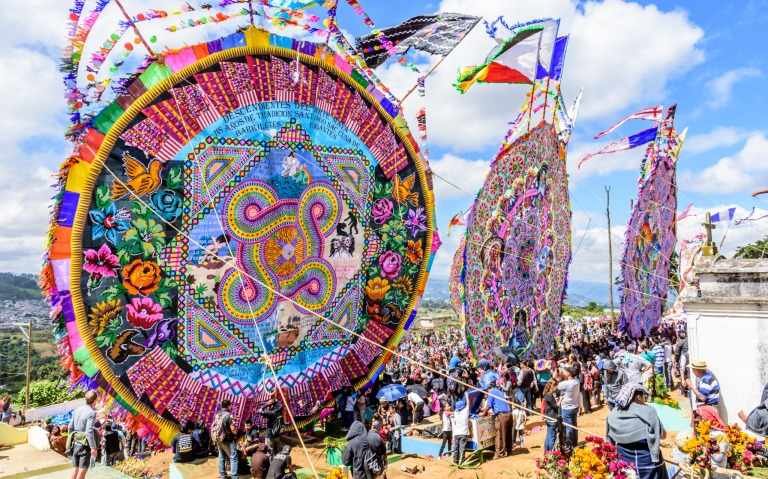 En el vibrante y colorido paisaje guatemalteco, la tradición cobra vida en el Día de Todos los Santos. Como en México, los guatemaltecos llenan los cementerios de amor y vida. Los papalotes se alzan al cielo, ondeando con colores brillantes, mientras las tumbas se adornan con flores multicolores que danzan al ritmo del viento.
