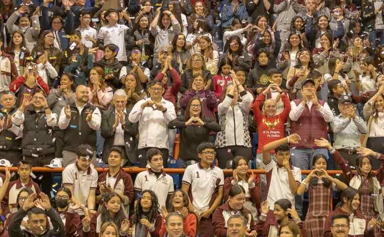 “Gracias maestras, maestros, madres y padres de familia por sumarse, por su compromiso docente y vocacional, ustedes son la piedra angular de la transformación, gracias por echar el resto, por su esfuerzo y preparación para informar a las y los estudiantes de secundaria y media superior”.