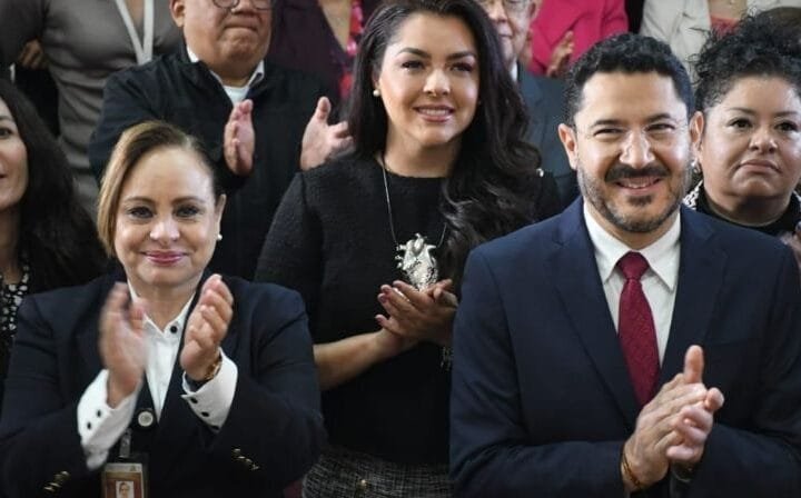 Las senadoras Geovanna Bañuelos, Ana Karen Hernández, Yeidckol Polevnsky y Liz Sánchez, encabezadas por el...