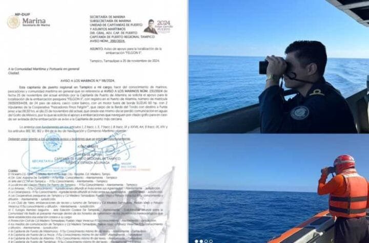 La Capitanía de Puerto Regional en Tampico hizo del conocimiento de marinos, pescadores y comunidad...
