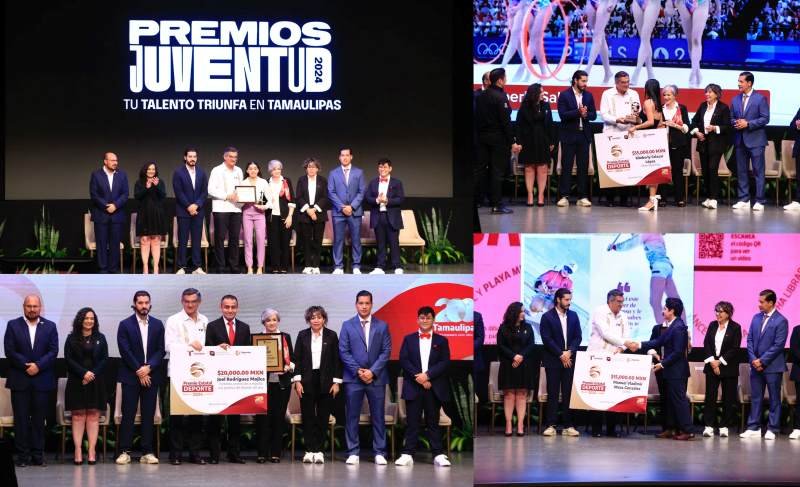 Durante la ceremonia se entregaron los reconocimientos y estímulos económicos a los ganadores de los Premios Juventud 2024: Área de participación Desarrollo Académico, Categoría 12-17 años: Isabela Loredo Carvajal y Categoría 18-29 años: Omar Alejandro Pérez Reyes; Área de participación Cultura y las Artes, Categoría 12-17 años: Dahian Cano Reyes y Categoría 18-29 años: Melisa Castellanos Muñoz; Área de participación Género y Diversidad, Categoría12-17 años: Renata Govea Camacho y Categoría 18-29 años: Maira Alejandra Treviño Cruz.