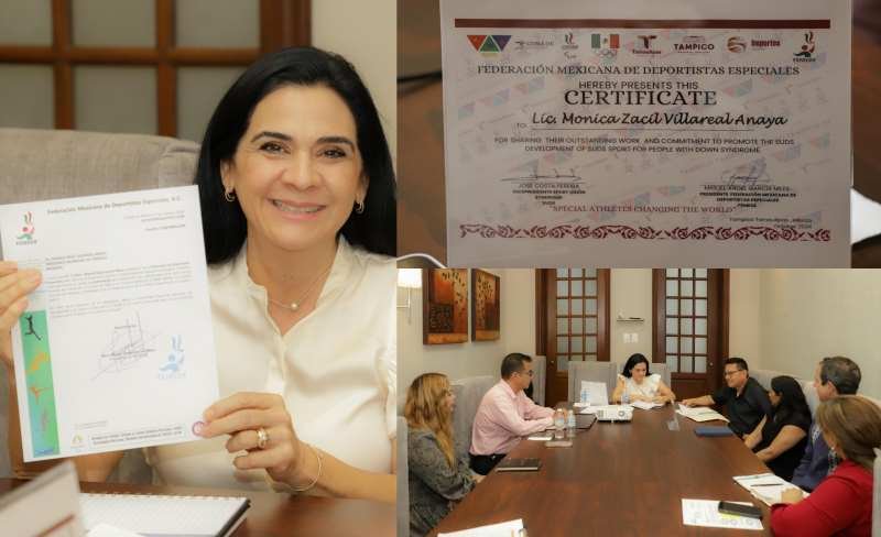 La Presidenta municipal Mónica Zacil Villarreal Anaya recibió un reconocimiento de la Federación Mexicana de Deportistas Especiales por el apoyo otorgado al organismo para la celebración del Congreso internacional de los atletas con síndrome de Down; así como por el respaldo que brinda al desarrollo deportivo de las personas con discapacidad.